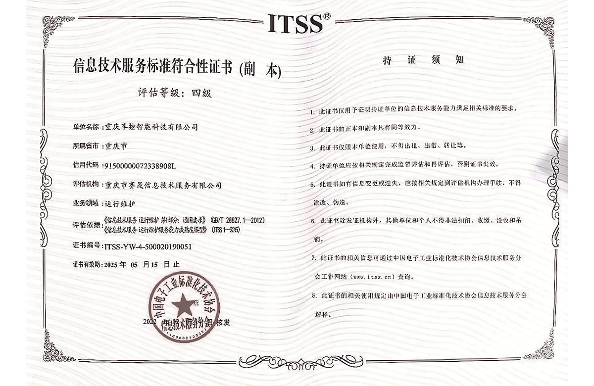 獲信息技術(shù)運行維護(hù)標(biāo)準(zhǔn)符合性證書